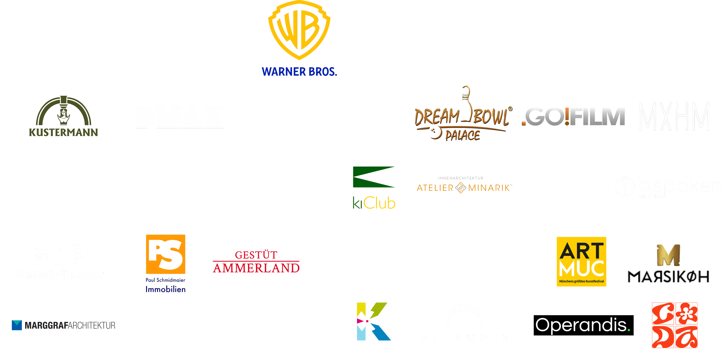 Zu seinen Kunden zählen unter anderem Warner Bros., Philip Morris, Tchibo, Schwarzkopf, Hochschule Fresenius, die Bayerische Staatsoper, John Frieda, Emma, Celemony, Oerlikon und Zirkulin.
